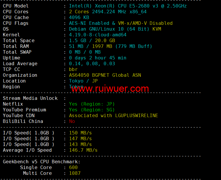 本次为为大家带来的是日本CN2 BGP云服务器,電信去程163,回程CN2,移動聯通去程回程直连线路的简单测评,方便大家在购买的时候可以参考。