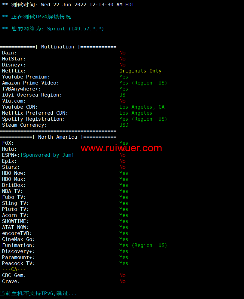 流媒体解锁测试: