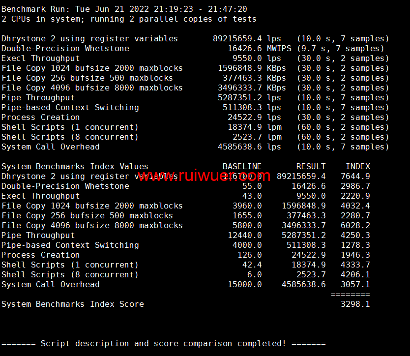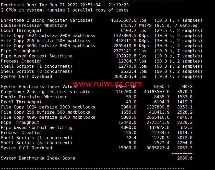 Unix bench Mark性能跑分测试: