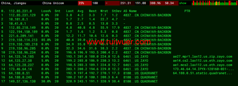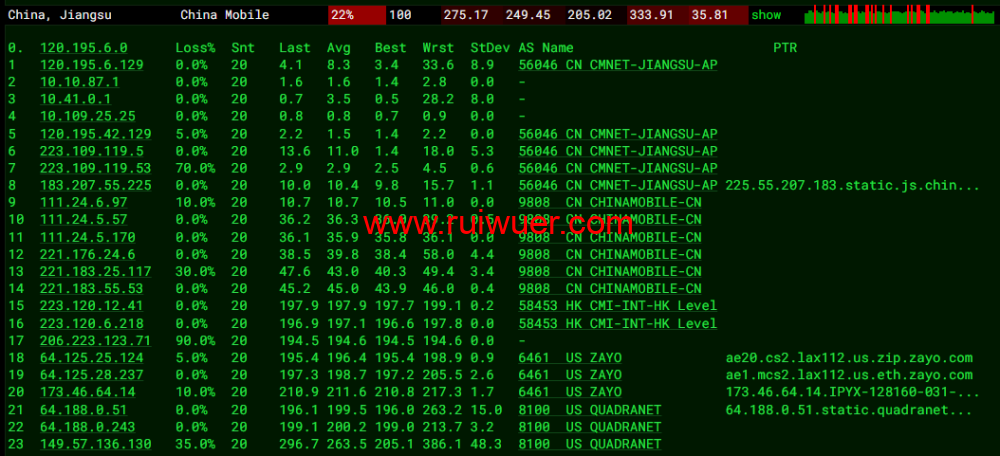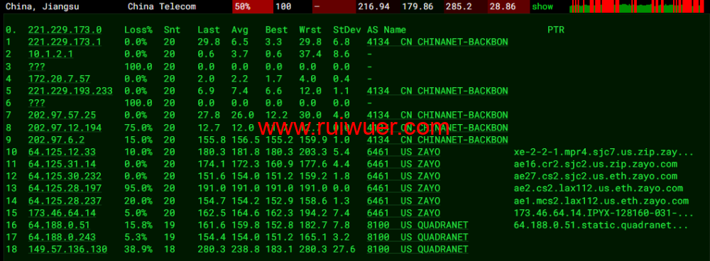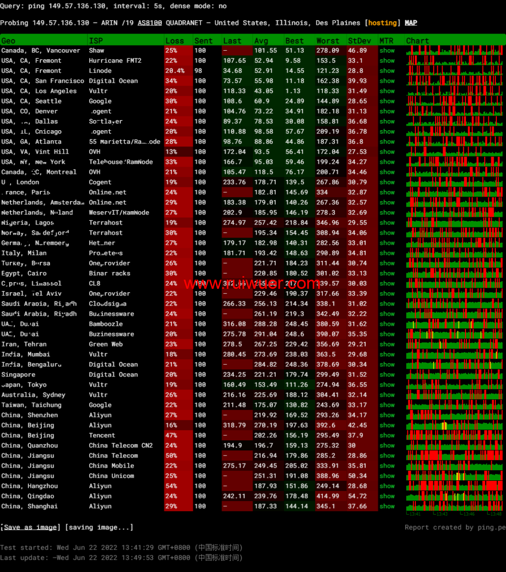 全球丢包测试: