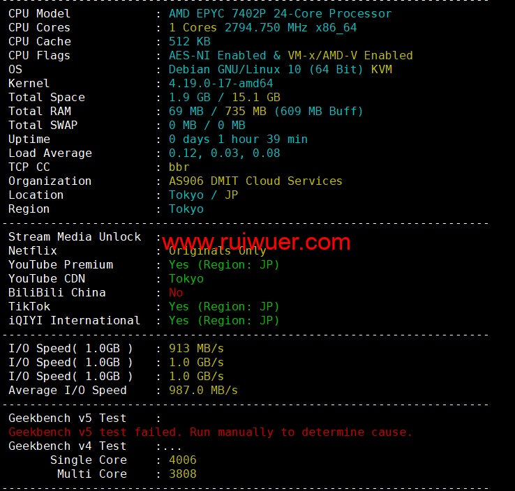 本文针对dmit日本cn2服务器做一下简单测评,方便大家购买参考。