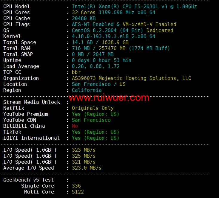 spinservers的圣何塞机房新增了中国电信网络,并针对该线路推出了专门的独立服务器和VPS主机,提供20-100M带宽,不限制月流量,高配独立服务器最低月付139美元起,本文对该机房线路机器做一个测评,方便大家购买参考。