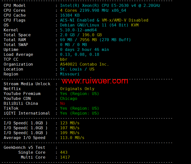本文针对Contabo美国中部“圣路易斯”机房做简单测评,数据仅供大家购买参考。