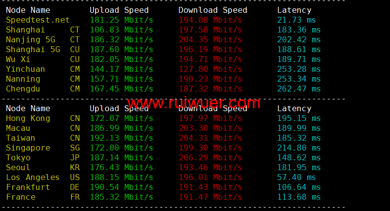Speedtest亚洲地区节点测试: