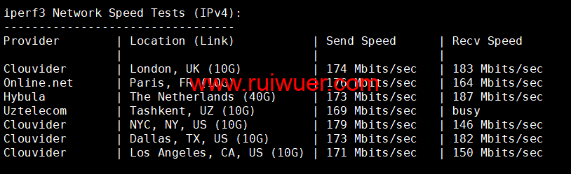 Iperf3欧美地区的节点的测试: