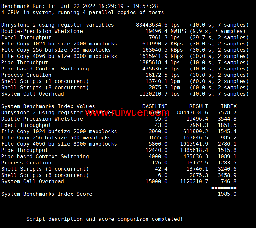 Unix bench Mark性能跑分测试: