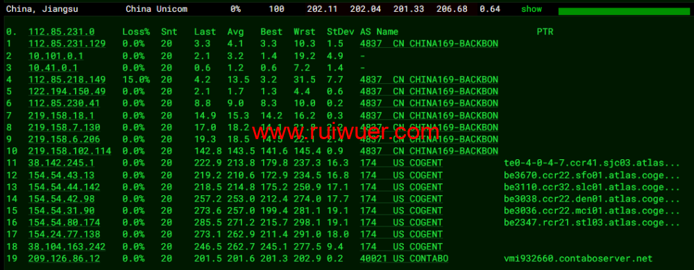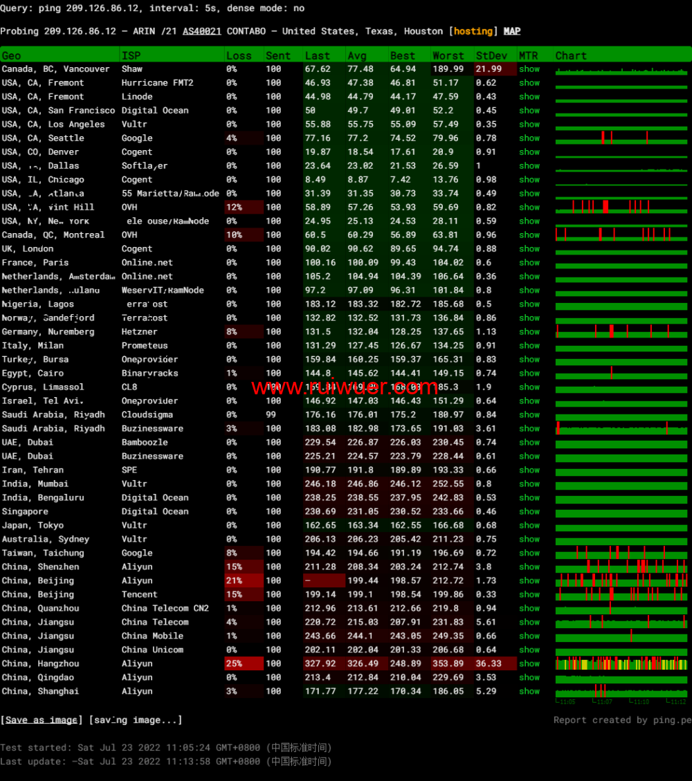全球丢包测试: