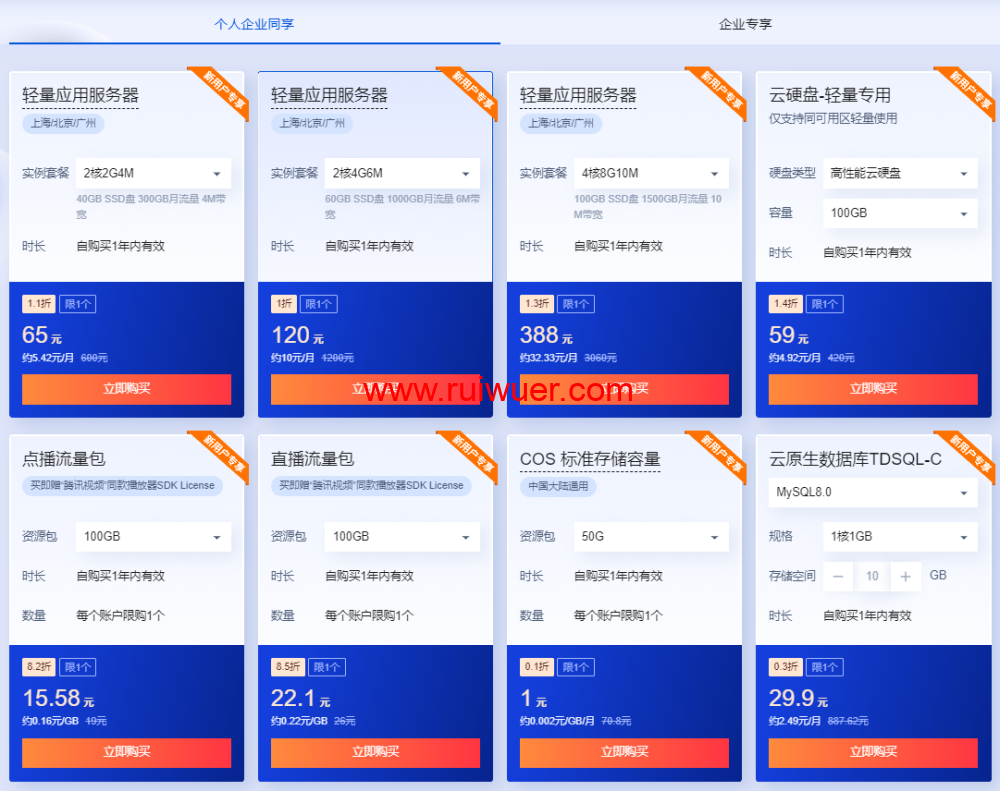 上云必备产品,新用户特价,低至1元起