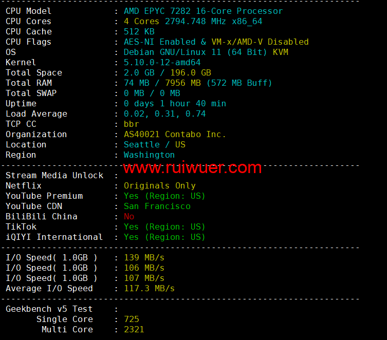 本文针对Contabo美国西部“西雅图”机房做简单测评,数据仅供大家购买参考。
