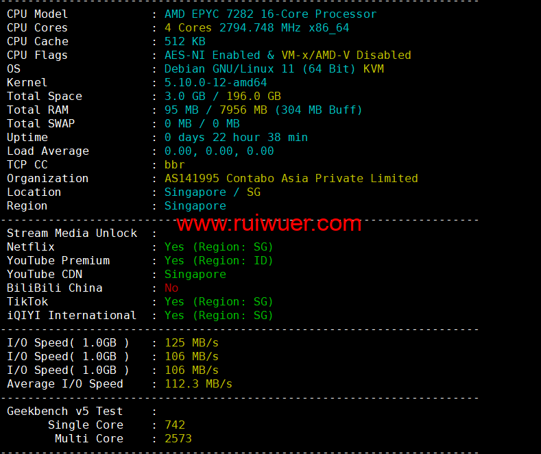 本文针对Contabo新加坡机房做简单测评,数据仅供大家购买参考。