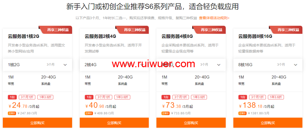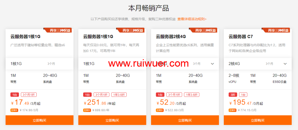 以下产品3个月、1年时长二选一,购买后还享续费、规格升级、复购三种权益