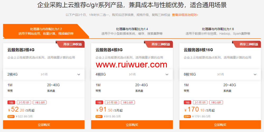 企业采购上云推荐c/g/r系列产品,兼具成本与性能优势,适合通用场景