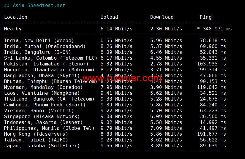Speedtest亚洲地区节点测试: