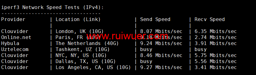 Iperf3欧美地区的节点的测试:
