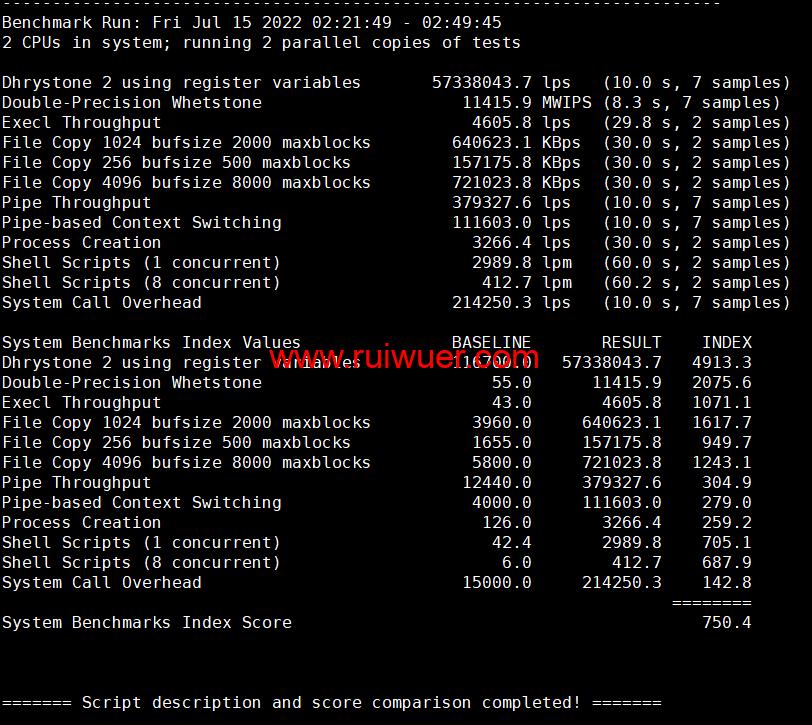 Unix bench Mark性能跑分测试: