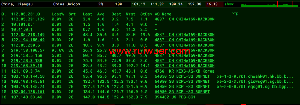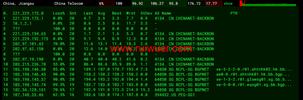 全球丢包测试: