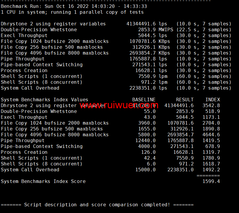 Unix bench Mark性能跑分测试: