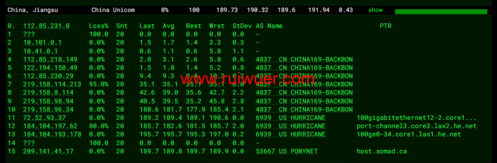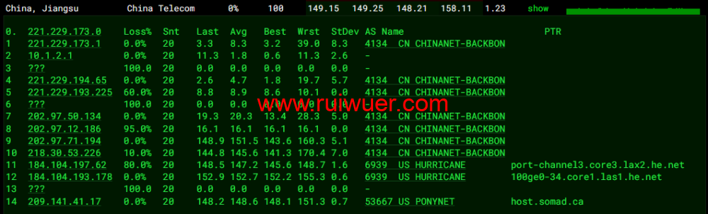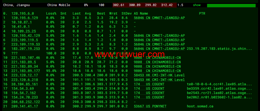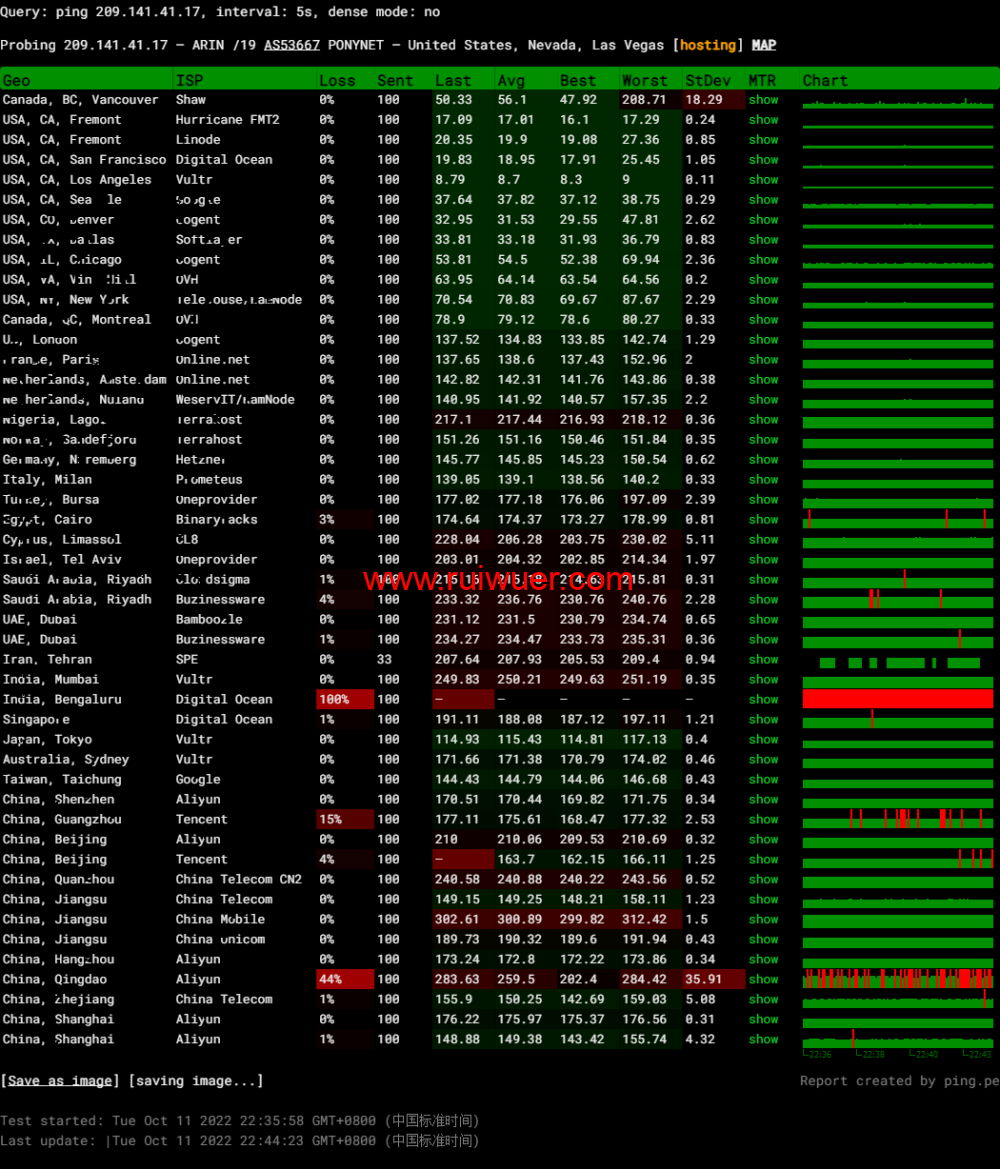 全球丢包测试: