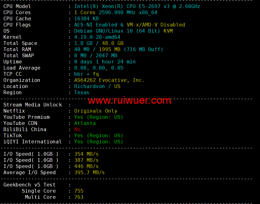 iON Cloud美国达拉斯机房vps,采用KVM虚拟化,纯SSD阵列,1Gbps带宽,流量仅计算单向。暂无windows系统,月付最低$8/月起,原生IP,支持解锁美区tiktok,需要的可围观。