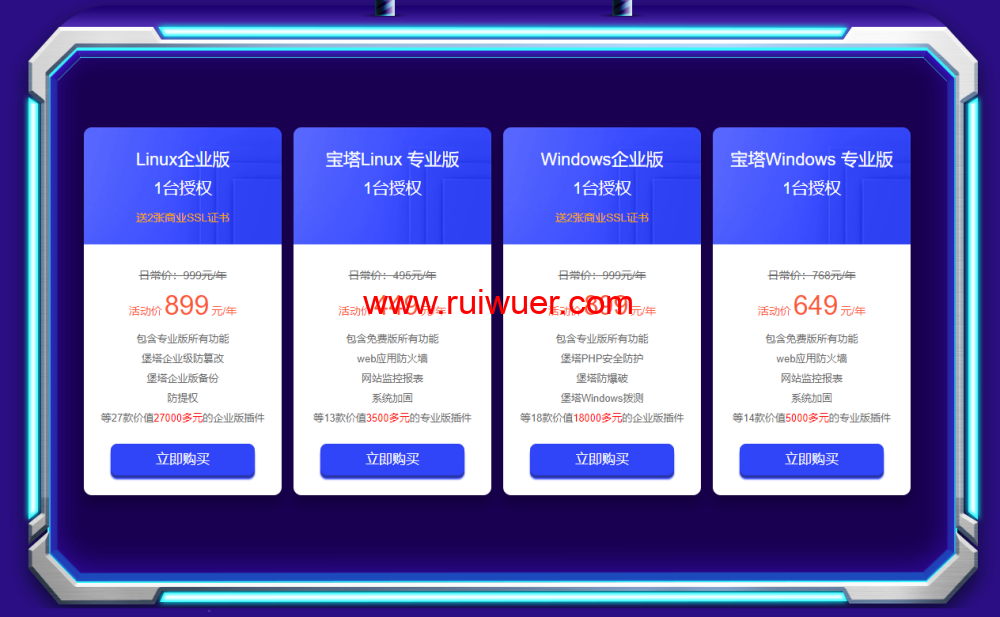 宝塔面板开启了2022年1024·双十一特惠活动,其中宝塔面板企业版899元/年起、宝塔面板专业版终生授权1988元!特惠Linux专业版20台永久授权15888元,Windows专业版20台永久授权16888元,本次活动时间10月24日10点–11月11日24点,有需求的可以别错过活动。