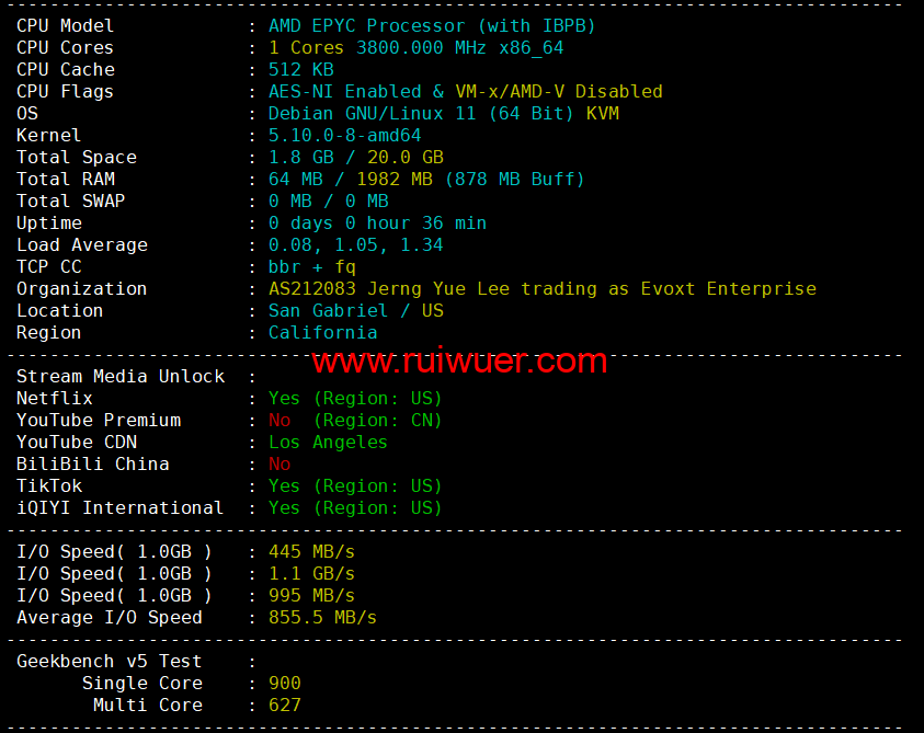 Evoxt上新了马来西亚机房vps,加上之前的美国洛杉矶以及英国伦敦,一共三个机房,本文针对美国机房做个简单测评,方便大家购买参考,1核/512MB内存/5G硬盘/500G流量,$2.99 /月起,需要的可以围观。