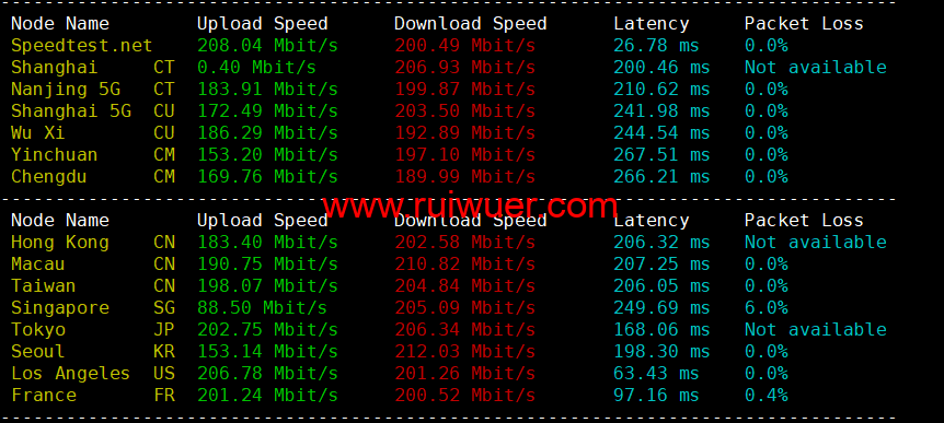 Speedtest亚洲节点上行下行测试: