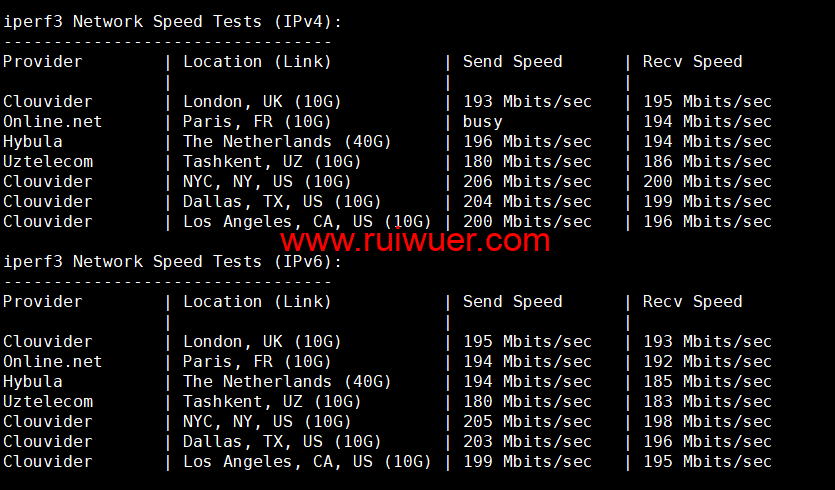 Iperf3欧美地区的节点的测试: