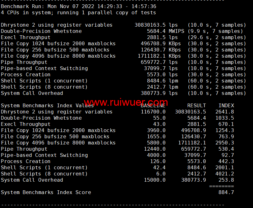 Unix bench Mark性能跑分测试: