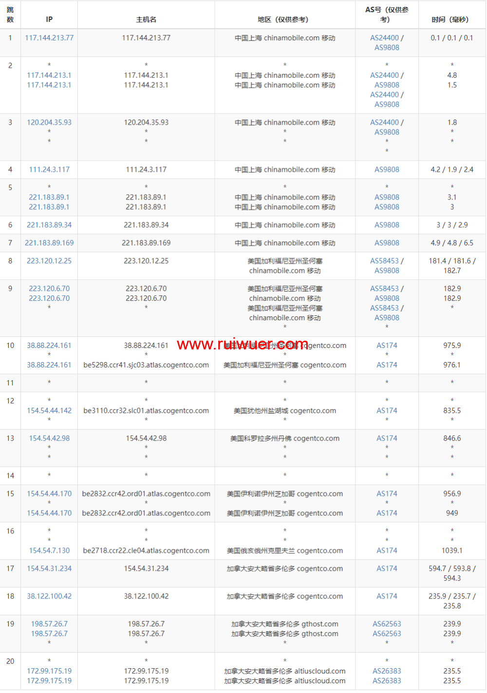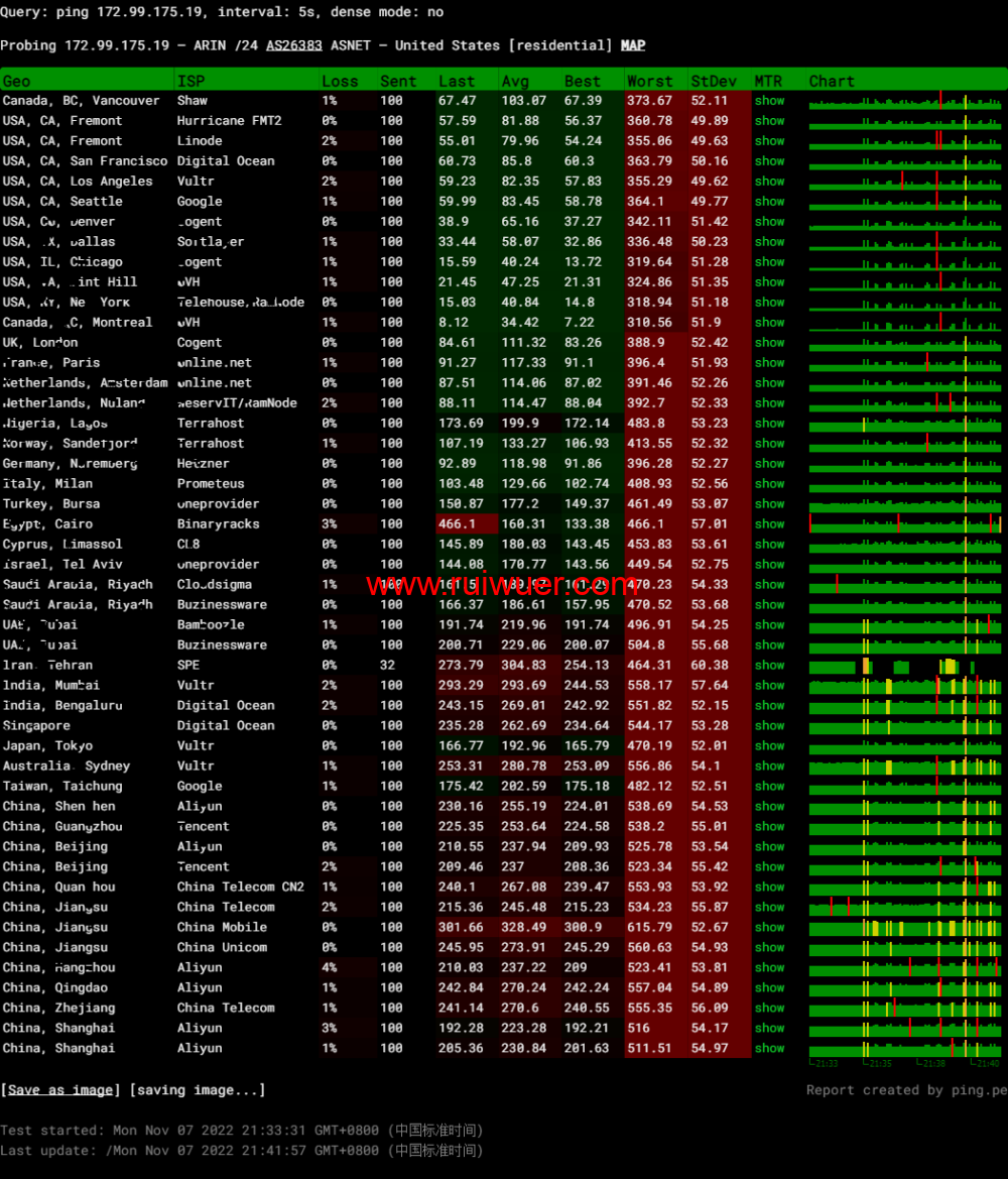 全球丢包测试: