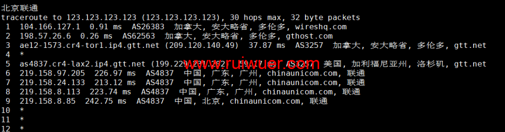 回程,到国内联通