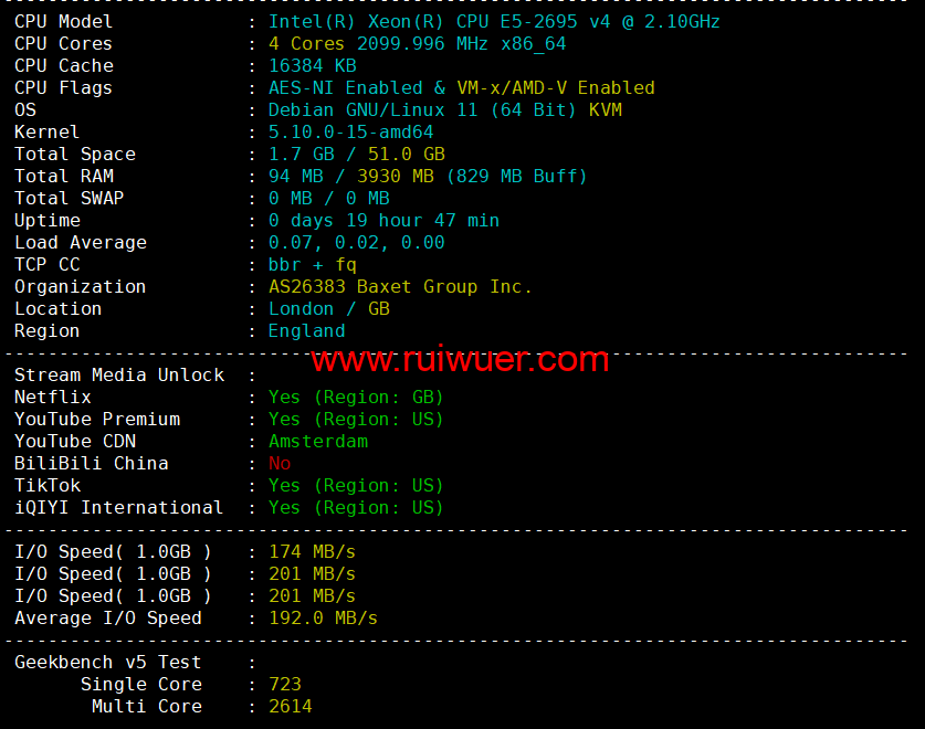 Justhost新上了英国伦敦机房vps,IP为广播IP,目前Justhost在全球10个国家,16个地点提供服务。新上区域的价格比俄罗斯各个机房价格略高,仍然为200M-1Gbps带宽不限制月流量,最低月付12.99元起,本文做个简单测评,方便大家购买参考。