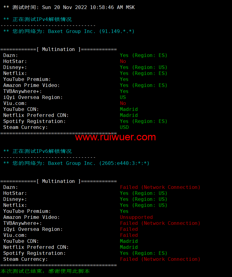 流媒体解锁测试: