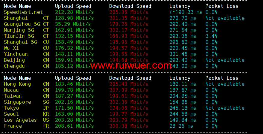 Speedtest.net国内国外上行下行测试: