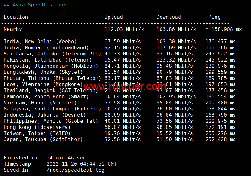 Speedtest亚洲节点上行下行测试: