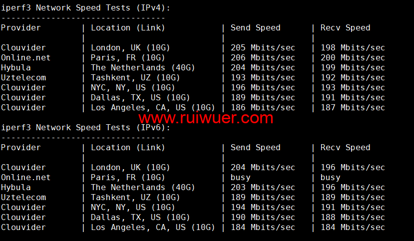 Iperf3欧美地区的节点的测试: