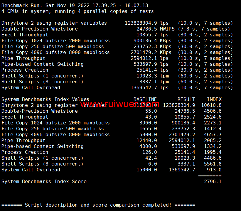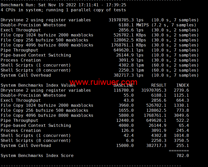 Unix bench Mark性能跑分测试: