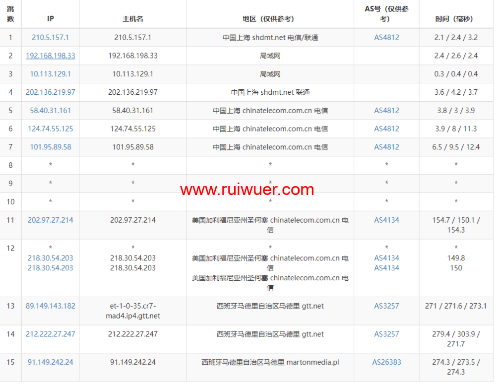 国内ping测试: