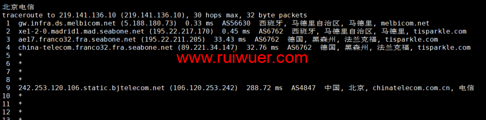 回程,到国内电信