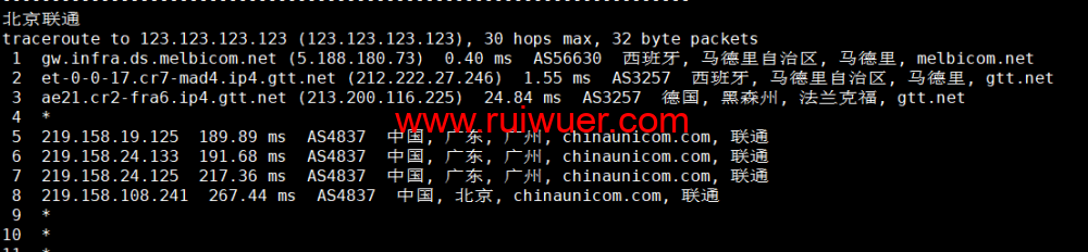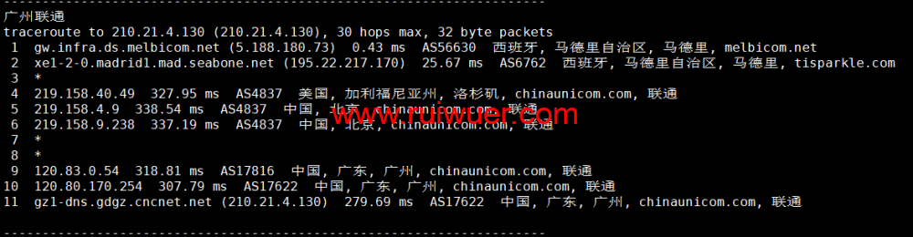 回程,到国内联通