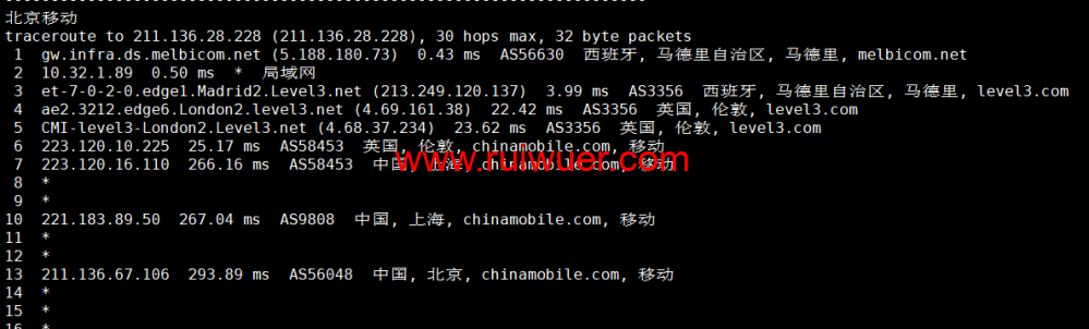 回程,到国内移动