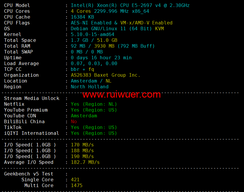 Justhost新上了荷兰阿姆斯特丹机房vps,IP为广播IP,目前Justhost在全球10个国家,16个地点提供服务。新上区域的价格比俄罗斯各个机房价格略高,仍然为200M-1Gbps带宽不限制月流量,最低月付12.99元起,本文做个简单测评,方便大家购买参考。
