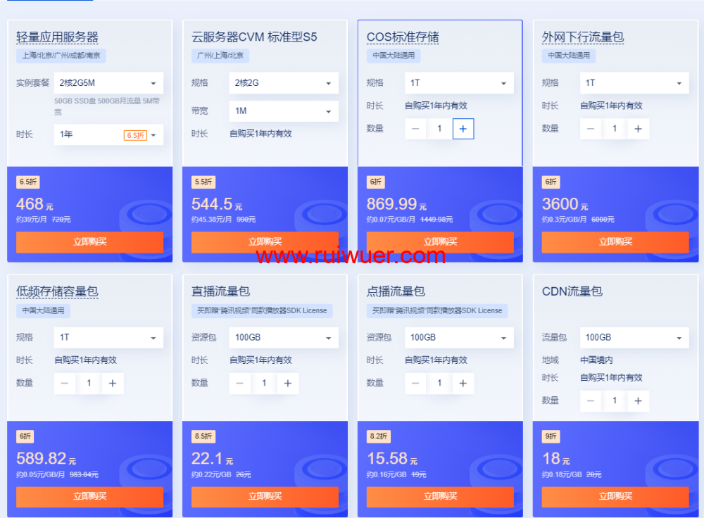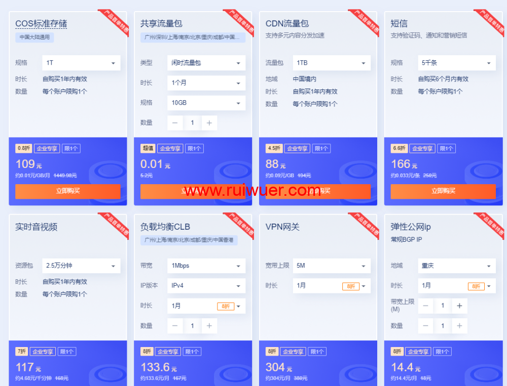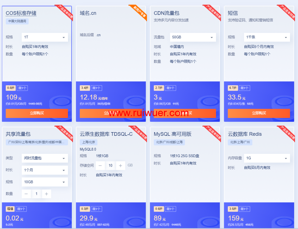 COS、CDN、短信、共享流量包等爆款产品,首购特价0.01元起