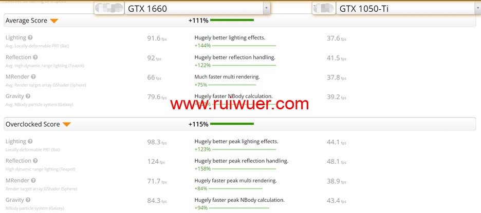 与GTX 1050 –Ti相比,GTX 1660在性能上平均上升了111%,部分参数参考如下。GTX1660 满足了目前1000款游戏中737款游戏的推荐图像要求,如Apex Legends,刺客信条、战地、使命召唤、控制、赛博朋克、地铁:离去等游戏。
