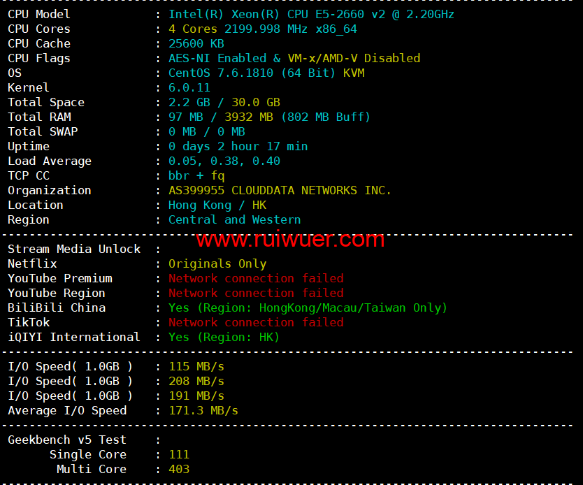 本文针对小黑云数据香港机房vps,线路走向、机器配置等做个简单测评,方便大家购买参考。