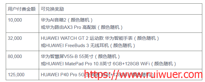 2、上面的云服务器产品购买还可以参与新购满额送华为手机P40 Pro!新购、按需转包周期订单金额可参与活动,续费、升级订单金额不参与此活动,兑换实物奖励的订单不允许退订; 礼品寄送时间:礼品预计在活动结束后30个工作日内寄出,请您耐心等待; 付费金额将于活动结束后统一统计,并兑换相应奖品,奖励不可叠加,即同一用户仅可兑换一次礼品,如果同一个付费金额阶梯有多款奖品可选,默认发放第一个奖品,具体规则如下: