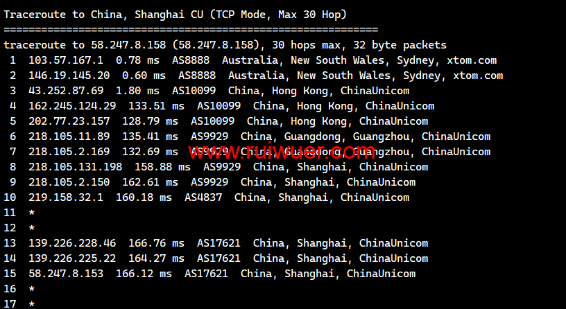 | 机房:悉尼机房(联通 9929) | 机房:中国香港 HK85/日本软银/DC6/DC9 等 |