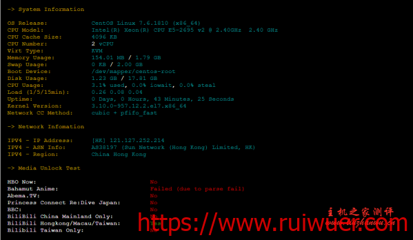 今天商家提供给站长一台香港CN2+BGP线路机器,下面把测评数据分享给大家做一下参考。