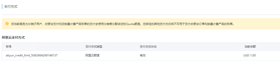 打开费用中心即可看到阿里云额度支付方式(分销商充的余额),充值后在阿里云网站随便买服务器了。