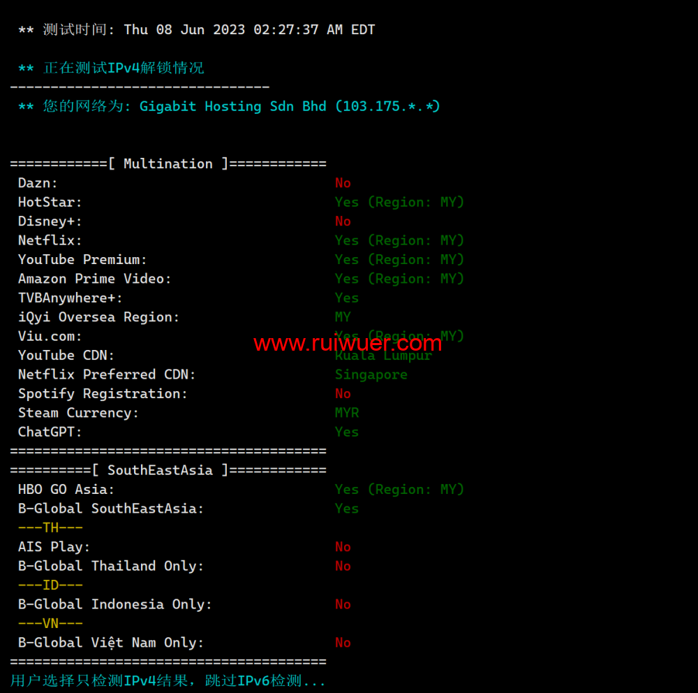 流媒体解锁测试:
