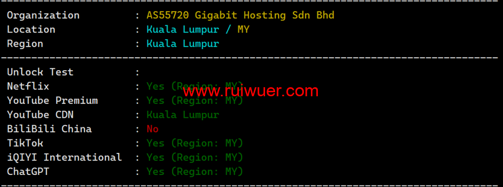 KVM虚拟化,纯SSD raid10,纯SSD阵列,100mbps带宽(不限流量),内置IPv4,多Linux系统,无设置费VPS, 机房位于马来西亚。优惠码: WESVPS20。测试ip:103.212.70.1//103.144.139.1